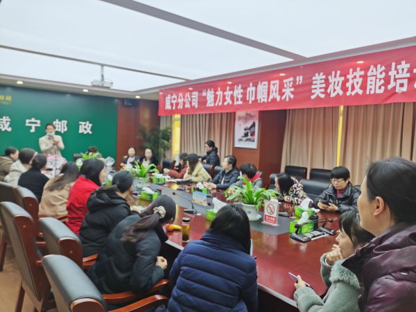 3月9日下午,为进一步提升女职工综合素质,提高女职工自我审美修养,增强女职工培塑自身良好“职场形象”的技能技巧,咸宁邮政工会邀请风尚化妆学校谢校长为女职工开展了一场以“魅力女性 巾帼风采”为主题的美妆活动,共有30余名参加本次培训。