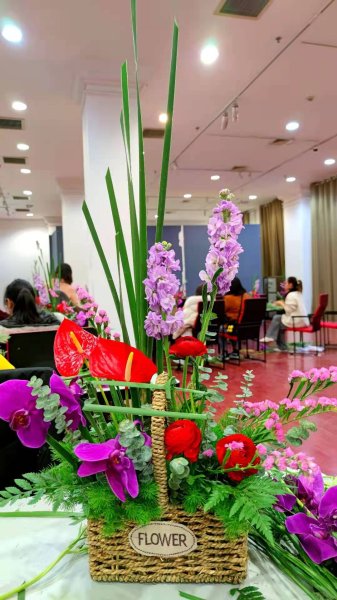 市分公司纪委书记张筱辉也在百忙之中来到培训现场,观摩员工的文化体验活动,并饶有兴致的与员工同乐,设计完成了一组花篮作品。