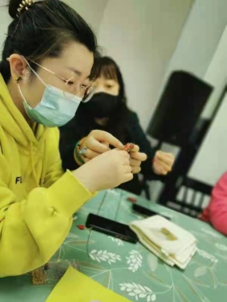 结绳看似简单,其实每一个步骤都很关键,错了一步就会失败,几个看似简单的动作却能编织出不同的绳结,在老师不厌其烦的指导下,大家反复摸索,手法逐渐娴熟起来!神奇的绳艺加上装饰品的搭配,显示出浓浓的中国风以它独特的魅力征服了大家!难得的手工DIY机会让大家乐在其中。“看我的珠链完工啦”“我的七彩手串也好了”声音此起彼伏,女神们迫不及待迫不及待向在场的人展示自己的手工作品。