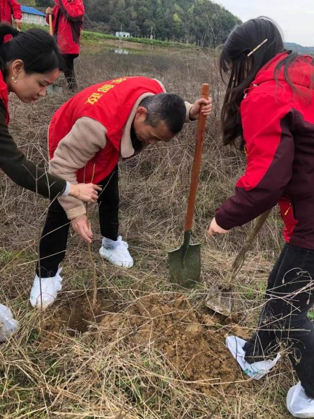 又是一年春来到,植树造林正当时。为增加职工凝聚力,提高工会干部保护环境的意识,3月12日,江西省上饶市万年县邮政工会组织开展义务植树活动,有20余名干部职工参加了本次活动,亲身体验劳动的乐趣,感受美化环境的意义。他们干劲十足,分工协作,相互配合,从运树苗、挖树窝,到填土夯基、扶苗培土,各个环节衔接有序,认真到位。经过劳动,一棵棵新栽树苗迎风挺立,呈现出勃勃生机。