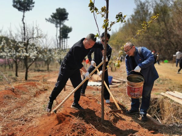 3月16日下午,昆明邮政工会协同市分公司相关党支部,开展“绿色邮政、绿色生活”主题义务植树活动。
