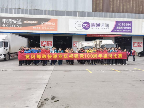 为迎接建党100周年,在“五一”国际劳动节前夕,黄州区工会组织员工开展拔河赛活动。同时选拔出12名选手参加2021年4月30日黄冈快递行业工会、黄冈市邮政管理局工会联合组织的庆祝建党100周年拔河比赛。