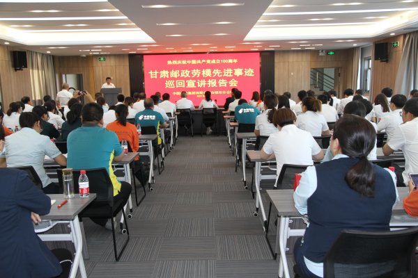 为深入学习贯彻习近平新时代中国特色社会主义思想和党的十九届五中全会精神,庆祝中国共产党成立100周年,弘扬劳模精神、劳动精神、工匠精神,营造“比学赶帮超”和学习先进、崇尚先进、争当先进的浓厚氛围,在全省邮政掀起学习先进典型的热潮,激发广大干部职工干事创业的积极性、主动性,为打造行业国家队,推动中国邮政二次崛起,努力实现甘肃邮政高质量发展目标,6月7日至11日,省分公司组织开展全省邮政劳模先进巡回宣讲活动,在全省11个市州举办报告会12场,部分市州分公司以电视电话会议和腾讯会议直播的形式把报告会开到了县区和支局班组。