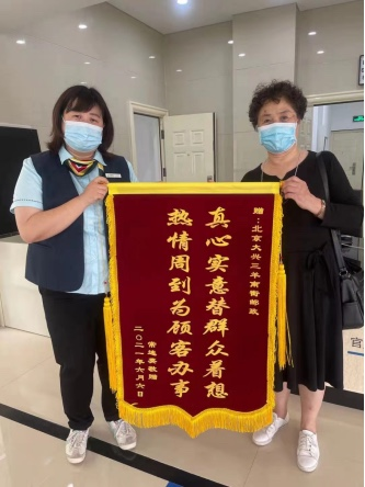 近日,大兴区分公司三羊南街邮政所收到用户常阿姨送来的锦旗。“真心实意为群众着想,热情周到为客户办事”这几个字承载的是网点工作人员对用户的真诚与热情,更是用户对工作人员服务的肯定与认可。