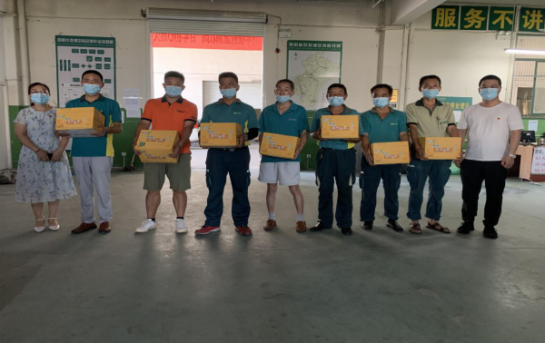 骄阳似火,酷暑难当,考验着奋战在一线的投递人员和网点人员。为做好防暑降温工作,改善一线员工工作条件,确保一线员工安全度夏,促进各岗位安全生产,7月21日,青阳县分公司、工会领导为奋战在生产经营一线的员工送去了矿泉水等防暑降温物品,把清凉送到了生产一线,把关怀送到了员工心坎。