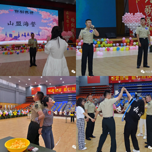 此次活动内容丰富、精彩纷呈,有欢乐趣味的互动游戏,有铁骨柔情的才艺展示,还有浪漫心动的现场告白,将活动氛围一次次推向高潮。活动期间还现场观摩了军史长廊,观看了《扎根大漠 砺剑强军》和《苍天般的阿拉善》宣传短片,进一步激发了广大青年的爱国拥军之情。