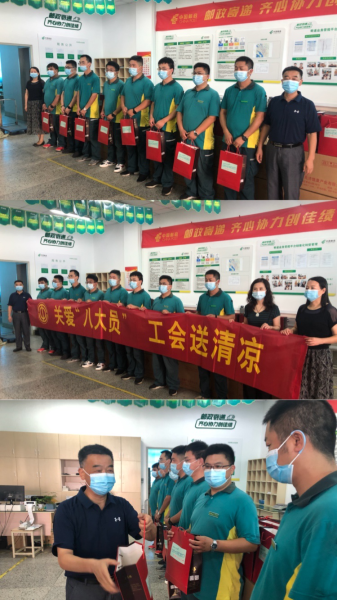 8月3日上午,苏州吴江区总工会领导黄秋根、沈未云、陈鸿飞一行,在吴江区分公司副总经理、工会主席丁斐等陪同下,冒着高温酷暑开展夏季安康“三送”活动,看望慰问高温下坚守岗位的邮政一线投递员工,为他们送去防暑药品、洗浴用品、毛巾等慰问品。