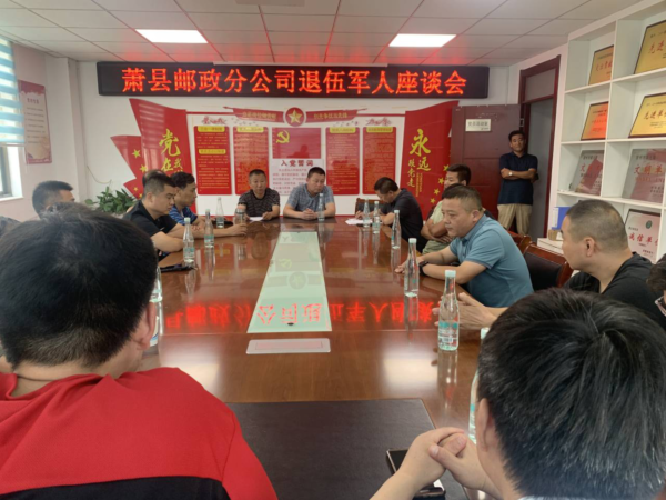 为了庆祝“八一”建军节,让“红色精神”“军人精神”融入邮政、融入岗位,融入发展,弘扬纪律严明、永不退缩、冲锋在前的战斗精神,7月30日下午,萧县分公司工会开展的退伍员工座谈分享活动在回忆军旅生活峥嵘岁月中拉开帷幕。