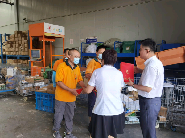 近日,持续的高温让一线投递作业备受考验。8月23日,中国邮政集团有限公司上海市分公司财务部严思颢副总经理来到了南市邮政支局和马当路营业部,看望慰问奋战在高温下的投递员工,为他们送去清凉和关爱。