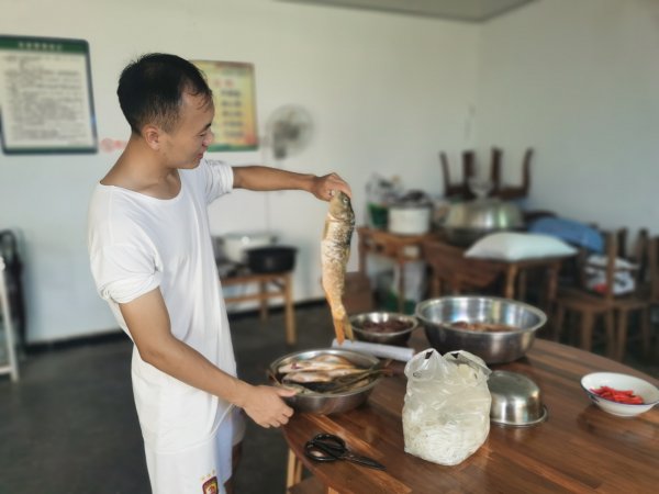 早晨,伙伴们就相约去往菜市场细心挑选蔬菜,网点还带来了乡间的时令美味“稻花鱼”。下午四时,各参赛团队开始处理食材为比赛做准备,六时,厨艺比赛正式开始了,团队队员相互配合,“滋滋滋......”锅中的油沸腾了,“稻花鱼”小心翼翼滑入锅中。“咕嘟咕嘟......”啤酒倒入已经炒好鸭子的大铁锅中,啤酒鸭就快好了。一阵阵香味从厨房飘来,一道道色香味俱全的菜品相继出锅,令大家垂涎欲滴。