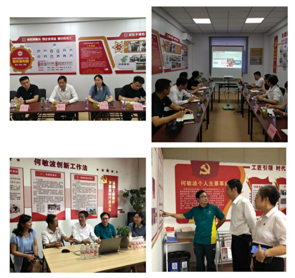 9月7日,张家港市总工会主席季洪良、副主席黄慧等一行专题调研“张雷劳模创新工作室”、“何敏波劳模创新工作室”,张家港市分公司总经理席林仙、工会主席张开陪同调研。