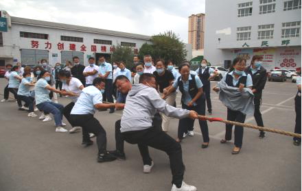 只听一声令响,参赛队员鼓足劲头开始了比拼,啦啦队员们在两边加油呐喊,比赛队员的心情也随着摇摆不定的红色绳头起伏不定,两边的啦啦队员们恨不得上场去加一把劲。经过12轮比赛,胜出的3队角逐前三名。尽管前几轮的比赛已经消耗了队员们的大量体力,但进入决赛的三组队员们摩拳擦掌,紧张的气氛不言而喻。只见拔河队员们个个鼓足了劲、憋红了脸,为了集体荣誉,各方势如猛虎,寸土必争,都想获得胜利。最终经过激烈的角逐,霍城县和特克斯县小组获得第一名、城区和巩留县小组获得第二名,可克达拉市和伊宁县小组获得第三名。公司领导分别为获奖代表队颁奖并祝贺他们取得了好成绩。
