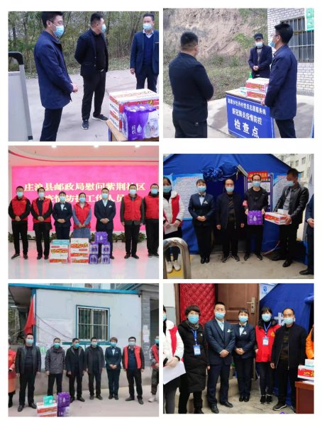 泾川县邮政分公司到精准扶贫村及网点服务半径重点路口疫情防控卡点进行慰问,送上亲情关怀、纯净水、方便面等生活物资。县公司田建荣总经理与卡点重要领导进行交流,广泛宣传疫情期间邮路畅通无阻,邮政网点免费送口罩等亲情服务,欢迎广大父老乡亲到邮政邮寄苹果、参与邮政储蓄。华亭分公司在支部书记曹生祥、纪检委员叶瑞同志的带领下,组织全体党员赴华亭各居民小区疫情防控值守点开展“疫情防控、爱心助力”华亭分公司在行动慰问活动。华亭分公司走访慰问疫情值守点10个,疫情防控指挥部1个,共赠送一次性医用外科口罩1000只、84消毒液40瓶、免洗手消毒液40瓶、方便面50箱,还向社区疫情防控指挥部赠送了微波炉、电磁炉、不锈钢蒸、煮锅、米、面、油等生活必须品。灵台县分公司朱晓龙总经理带领办公室,市场部、寄递主管、金融督导、农村网点支局长对各村社疫情防疫服务站点,为坚守在一线的值班人员进行了慰问。崆峒区分公司王晓华总经理、庄浪县分公司樊愿斌总经理带领班子成员和党员干部到各社区及村社防疫站点进行慰问,为坚守在一线的值班人员送去防疫用品,目前整个慰问工作仍在进行中。 全市各级邮政疫情防控慰问工作充分体现了国家有难、邮政有爱、国企担当。市分公司在广泛开展公益慰问的同时,也全面开展了生产一线的旺季慰问工作,全市各级邮政单位高度重视疫情防控,科学防控、合理安排生产,做到疫情防控和安全生产两不误。以通畅的邮政渠道和服务,为履行好邮政行业“国家队”的使命担当,为人民群众做好服务保障做了最有效的背书。