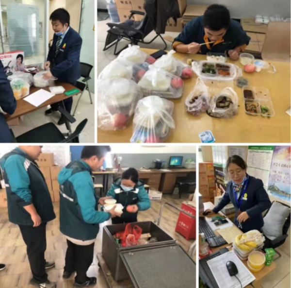 “今天的午餐真丰盛,有排骨、桂花鸭、三鲜虾仁,还有杂粮和水果,我们再也不用订外卖了”,网点的员工们拿着热腾腾的午餐开心的说着。在没有送餐前,网点一线员工每天都要订餐或者在外面用餐,既不卫生,又不合口味,疫情期间很多餐饮店关门,给员工们的用餐带来的很大的困扰。