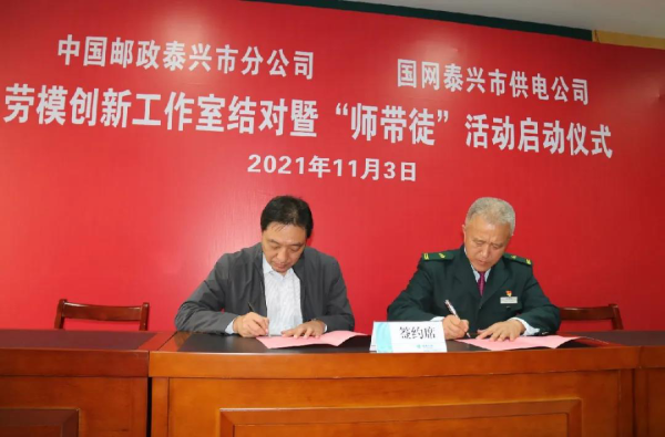 11月3日下午,泰州首次“跨行联盟”在泰兴正式启动,泰兴市邮政分公司何健忠劳模创新工作室与泰兴市供电公司张强劳模创新工作室举行结对共建签约仪式。泰兴市委,市、县两级邮政分公司及供电分公司领导,社会代表等50余人出席活动。