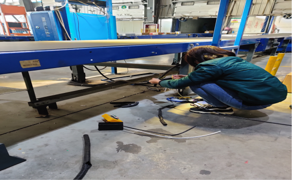 以往生产发现顶扫装置对总包袋牌、不平整面单及异形件面单识别率低,造成停机次数过多,扫描人员需要在顶扫处理位及分剔位来回补扫和重新启动皮带机,极大影响生产连续性和效率。为了更好利用顶扫设备,顺应生产,实现大范围减员,郭正谷工作室成员积极参与出口车间经济责任制团队流程变革加技术改造,实现了新的装车扫描流程。