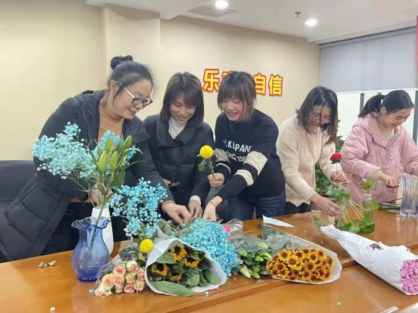 2021年12月22日,九龙坡邮政工会组织机关员工开展DIY插花活动,通过对各个花色的品种、色彩及插花造型的搭配,充分发挥员工的想象力和创造力,现场氛围轻松愉悦,精美的插花作品令人赏心悦目,有效丰富了员工生活,提升了员工的幸福感。