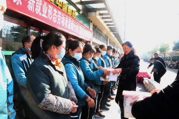 为做好新就业形态劳动者的关心关爱工作,南通市总工会开展“工会在身边·新就业形态劳动者温暖行动”服务月慰问活动。12月6日上午,南通市总工会副主席黄燕一行来到南通邮政分公司虹桥营揽投部,看望慰问50位邮政一线快递员,为他们送去防疫物资包和冬季保暖用品,让邮政快递员工们深切感受到了市总工会的关爱。这是继11月12日,南通市人大常委会副主任、市总工会主席葛玉琴对邮政快递员慰问后的又一次慰问。