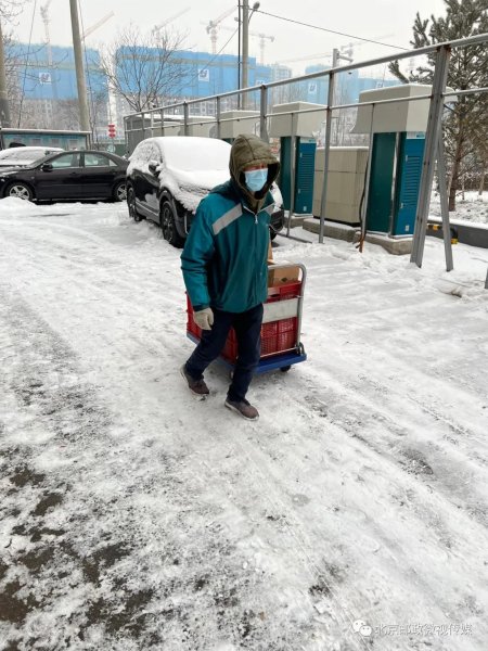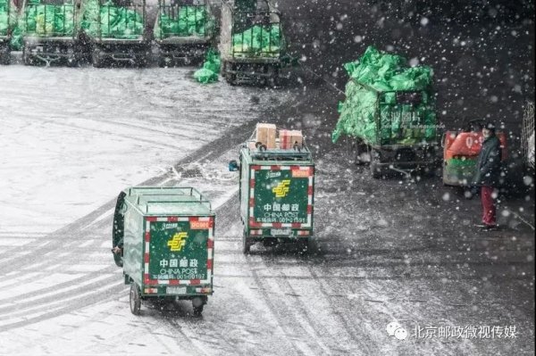清晨,雪花漫天飞舞,皑皑白雪妆点着银装素裹的北京城。然而, 邮政“小哥”无心欣赏京城雪景。因正值旺季进口高峰期, 周末两天,包裹进口量会有小幅增长, 又逢大雪奇寒天气,投递难度大大增加。面对暴雪、低温、高量带来的困难,各区分公司投递部、营业部启动应急预案,各级领导干部奔赴一线,给大家鼓劲,并叮嘱大家,做好服务的同时要注意出行安全,做好保暖,勿忘防疫。北京邮政“小哥”冒雪依然坚守在邮路上。