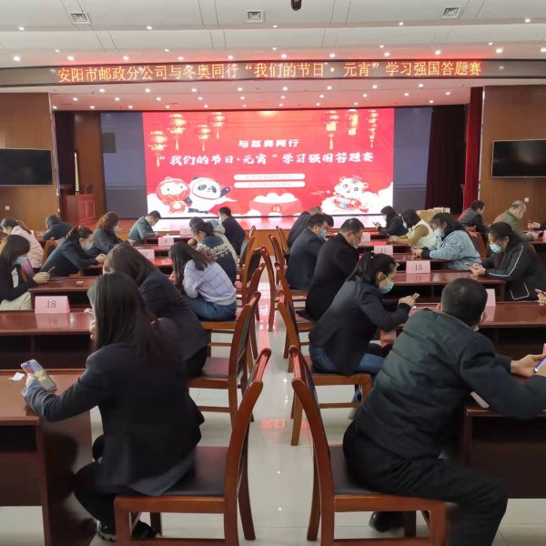 2月14日下午,安阳市邮政工会举办了“与冬奥同行,我们的节日·元宵‘学习强国’答题赛”活动,经过各分会选拨,共有48名员工参加了今天的比赛,经过5轮、一个半小时的对抗,最终,押运公司分会选派的江洋飞获得了本次比赛第一名,综合办公室分会选派的张月波获得第二名,党建部分会选派的张利姣和综合办公司分会选派的高磊获得并列第三名。本次活动的开展,进一步激发了广大邮政员工登录“学习强国”进行自主学习的热情。