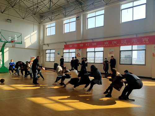此次活动除了传统节目猜灯谜以外,还设置了拔河、投篮和乒乓球三项体育比赛。活动现场,印制有灯谜的彩旗挂在活动室周围,彩旗飘飘,充满了喜气洋洋的热闹气氛。员工们来到活动室浏览谜面,或驻足观望,或凝神思考,或互相讨论,从眉头紧皱到喜笑颜开,谜底被大家纷纷猜中。在拔河比赛中,参赛职工同心协力、铆足劲头拼命拉绳,加油助威的啦啦队也热情高涨、激动万分。在投篮比赛和乒乓球比赛中参赛职工磨拳擦掌、展示技巧,获得观看者的阵阵掌声。
