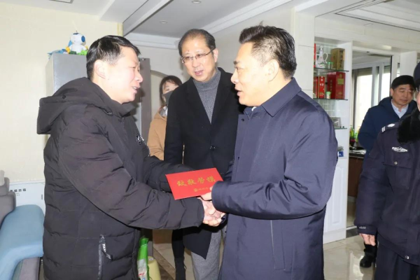 1月27日上午,盐城市总工会党组书记、常务副主席王玉新一行上门看望慰问抱病在家休养的邮政投递员刘学峰。