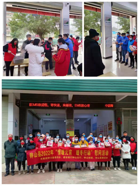 2月15日上午,元宵佳节,钟山县团委副书记钟思思一行,到钟山县分公司,寄递事业部,快递行业工会对快递小哥进行暖冬慰问,给快递小哥送上热气腾腾的汤圆,慰问中,对他们的敬业精神表示肯定,感谢他们为行业和社会做出的贡献,鼓励他们继续保持水准,提供更优质的服务,争做行业标兵。同时指出在生产工作中要认真落实安全生产和疫情防控工作的各项要求,以优质高效服务,更好地满足群众寄递需求。为人民提供方便快捷的快递服务。(广西邮政工会)