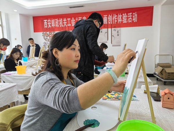 几笔勾勒似云锦,点墨绘出心中情。为纪念第112个国际妇女节,充分展示邮政女性时代风采,3月8日,西安市分公司机关工会举办了“画意人生”油画创作体验活动,来自机关各部室女职工欢聚一堂,在感受艺术魅力的同时,庆祝专属节日,凝聚巾帼力量。
