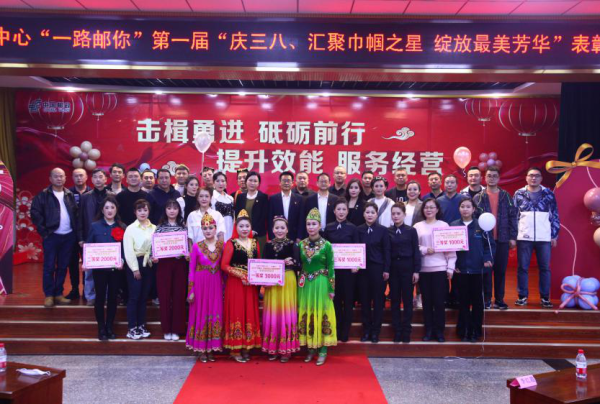 2022年3月7日下午,乌鲁木齐邮区中心近90名员工欢聚在多功能厅,以召开巾帼建功表彰会暨“汇聚巾帼之星、绽放最美芳华”时装表演赛的方式,喜庆112个“三八”国际劳动妇女节。我中心领导班子、巾帼建功标兵、劳模先进家属以及一线女员工代表参加了活动。