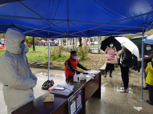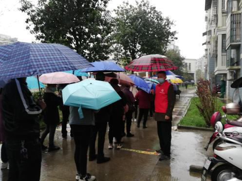 3月20日周日早上不到8点,邮政员工志愿者就奔赴蓉城镇天华社区集合,自觉服从社区调遣安排,扛起责任、勇于奉献,前往青山新城东区核酸检测点,开展核酸检测现场志愿服务活动,志愿者们冒雨维持现场秩序,引导社区居民保持一米线距离,提醒全程佩戴口罩,指导打开安康码、行程码,无安康码携带身份证,做好检测前准备工作。与此同时,青阳县分公司员工志愿者在该小区进出口开展查验安康码及行程码、核酸检测报告;配合社区核查各户14天内来往县外及返回后核酸检测情况等志愿服务。