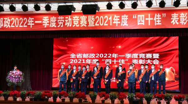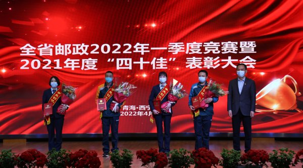 2022年4月25日,青海省分公司召开全省邮政2022年一季度劳动竞赛暨2021年度“四十佳”表彰大会,隆重表彰了2021年度全省邮政最佳营业员、投递员、营销员、邮运员“四十佳”员工和2022年一季度金融、寄递竞赛活动中取得佳绩的集体和个人。