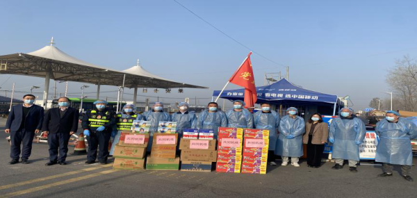 在来安卡口,泗阳分公司执勤志愿者陈然、徐子涵协同公安、卫健等已连续奋战在一线3天1夜。朱文东为大家送上牛奶、面包、方便面和自热锅等慰问品,详细询问防疫工作开展情况和遇到的困难,对奋战在一线的工作人员表达谢意与敬意,并提醒大家做好自身防护工作。志愿者们也对泗阳邮政的慰问表示感谢,纷纷表示将立足本职,以更加饱满的精神状态践行使命,用实际行动扛起“疫情防控安全线”的责任担当。