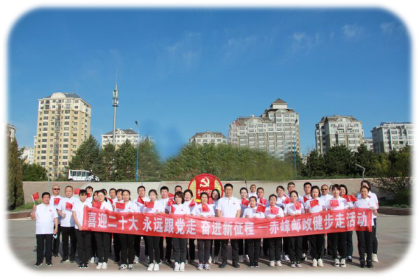 阳光明媚四月天,春风拂面展笑颜。为丰富机关职工的业余生活,有效推动广大干部职工以更加健康的体魄、更加饱满的精力、更加积极的状态投入到本职工作中去,在“双节”即将到来之际,赤峰市邮政工会于4月29日上午,组织机关职工开展“喜迎二十大、永远跟党走、奋进新征程”健步走活动。