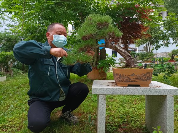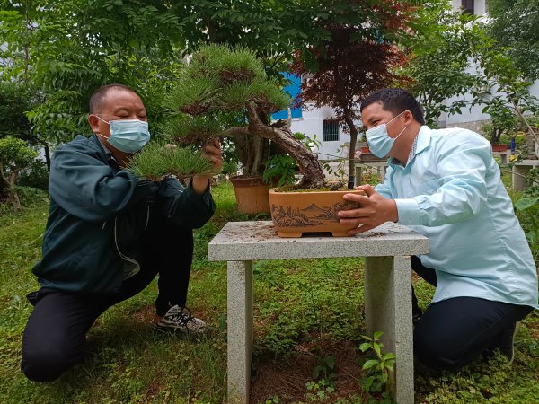 日常负责盆景打理的是支局的投递员赵亚军。赵亚军是一位资深的盆景制作爱好者,其制作的盆景作品曾经获得崇阳县盆景协会第四届展览评选金奖。在他的精心养护下,各个品种的盆景清秀古雅、郁郁葱葱、赏心悦目,提升了小花园的品位,美化了支局的环境。业余时间,支局职工在这美好的环境里读书、打球、讨论工作,不仅缓解了工作压力,也增强了团队凝聚力。
