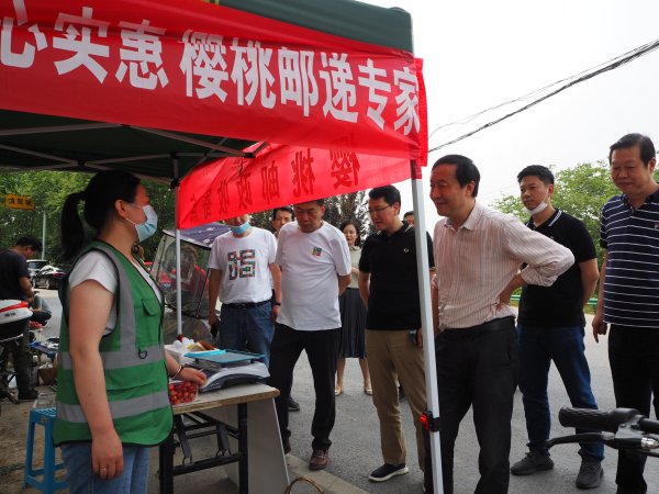 强国茂副总经理一行参观两地樱桃邮件处理中心,了解网运组织、疫情防控、后勤保障等工作,走访多个樱桃驻地揽收点,与职工亲切交谈询问收寄情况,并深入合作果园与电商户和果农当面交流,从项目营销、运行质量、驻点收寄、客服跟踪、客户回访等环节进行详细了解与指导。