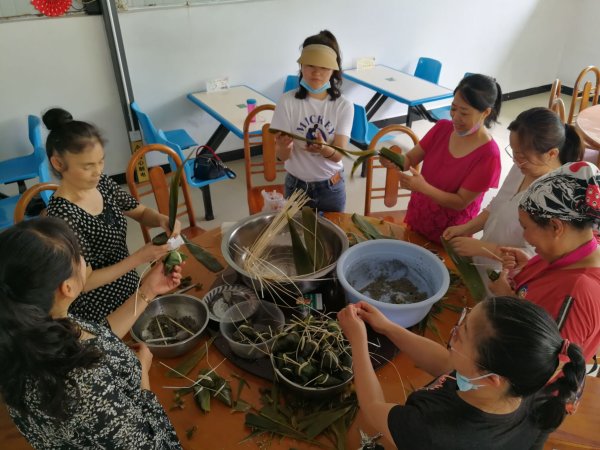 不一会,一个个棱角分明的粽子成型了,一串串软糯香甜冒着热气的粽子出锅了。大家聊端午、话习俗,品味着浓浓端午的粽情粽意。