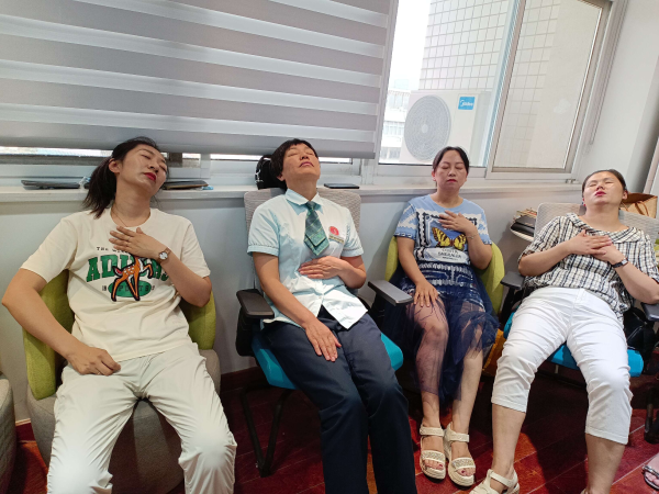 活动第一个环节是由老师组织的“破冰游戏”,互相介绍身边的同事,在心理老师的指导下,减压活动在轻松愉悦的氛围中顺畅进行。现场迅速活跃起来,进入到轻松的活动氛围中,笑声连连。 第二个环节由老师带着大家做了冥想心理减压法。职工们“闭着眼睛进行深思”,专注于自身的呼吸和意识,感知生命每一瞬间的变化。在专注于一呼一吸的同时,记住自身最理想的状态,让自己沉浸在抛开万物的真空状态,找到心灵的平衡。冥想过程中的脑波会变得安定、心情逐渐变得平和、全身肌肉变得放松。
