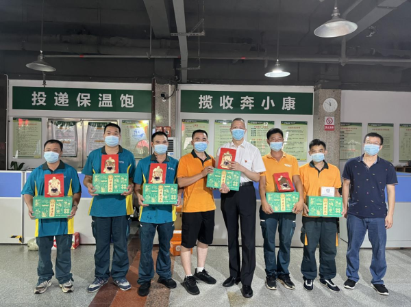 为做好防暑降温工作,体现企业、工会对外勤人员的关爱,近日,中山市分公司领导班子成员分别到投递部、金融支局、邮运车队等一线班组开展高温慰问活动。慰问组代表省、市分公司给外勤员工送上清凉饮料、凉茶冲剂以及龟苓膏,并叮嘱他们要加强高温、台风天气作业保护,要求各单位坚持以员工需求为导向,在做好常态化疫情防控的同时,采取切实有效措施,减少疫情、夏季高温以及台风天气因素叠加给员工生产生活带来的不利影响。