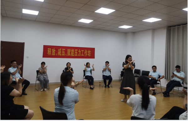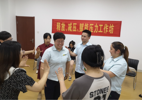 本次活动邀请宣城职业技术学院心理工作室主任方婉莹副教授主持,城区公公司24人网点负责人和理财经理参加了此次活动。目前很多的金融网点的负责人工作连轴转,压力很大,有时候还得不到家人的理解,压力与日俱增,难免会出现思想紧绷、失眠、情绪波动等情况。针对这些情况,老师认真与大家进行了沟通,对提问给予专业的解答,并开展了“十巧运动操”、“信任不倒翁游戏”、“OH卡探秘”团体活动。此次活动让职工们对工作和生活中的心理问题有了初步的认知,在如何对待工作中的种种问题,以及如何构建和谐的家庭环境和亲子关系方面,得到了心理健康教育专家的有效指导。