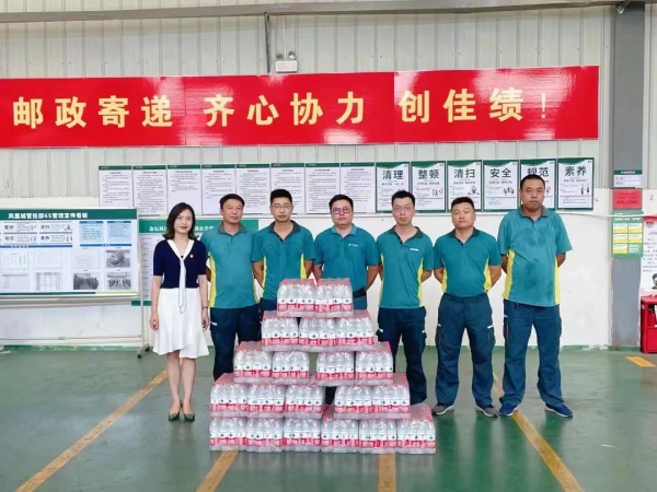 金坛分公司总经理汪宁在慰问时叮嘱广大投递员,在保生产的同时务必注意身体健康,做好防暑降温。同时要求各营投班组严格落实安全生产和各项安全防护措施,做到生产经营和疫情防控两手抓。
