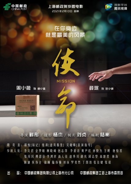 和以往上海邮政出品的微电影作品相同的是,《使命》由本单位员工自编、自导、自演、自拍,从导演、摄像、编剧到制片、剧务、化妆,直至所有的参演演员,全部由上海邮政员工自行担任。通过反映当代邮政人的工作日常,以小见大、以微见著,展现邮政员工当家做主的主人翁精神、与时俱进的服务方式和“为人民服务”的理想信念,凸显邮政“国家队”的职责与担当。