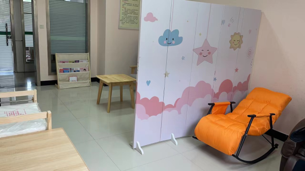 “妈咪小屋”位于北京路支局二楼职工小家内,占地面积约25平方米,根据实际需求设置4个功能区,整体风格温婉简约,突出实用性。原木和淡粉的色调,让整个房间更加明亮、恬淡温馨。在哺乳休息区内,不仅配置了屏风隔断、可调节躺椅、按摩椅,还免费提供防溢乳垫、清洁棉签等哺乳专用品,解决妈妈们哺乳和背奶难题;在婴儿护理区内,配置了婴儿·床、婴儿护理台、尿不湿、柔肤湿巾等婴儿专用品,让宝宝护理、临时休息等问题迎刃而解;在休闲阅读区,配置了沙发、茶几、书报栏及配套报刊、育婴书籍等设施,实现了休闲、阅读多功能融合;在电器使用区,配置了置物柜、母乳储存专用冰箱、饮水机、微波炉等电器一应俱全,打造了开放式小厨房。墙面还张贴了宝宝健康小知识、母乳喂养好处等宣传展板以及“妈咪小屋”管理制度,内容科学丰富。经过合理化、规范化布局的“妈咪小屋”真正实现“一屋多用”的功能,为处于孕期、哺乳期的女职工们撑起了一片爱的天空。