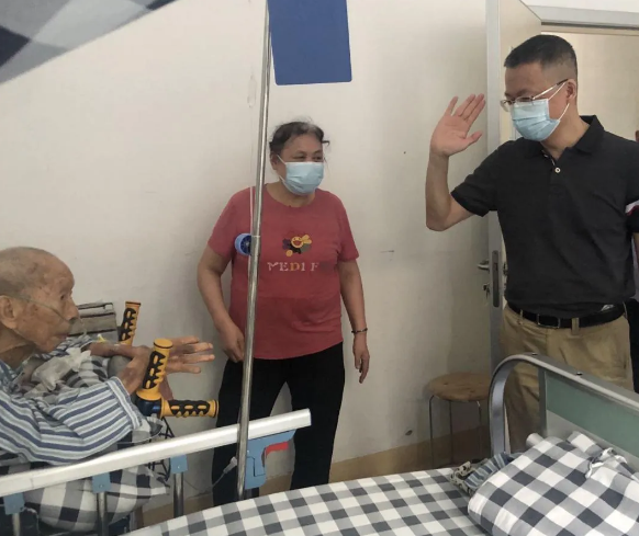 7月15日,信源集团工会慰问小组前往到医院探望长期卧病在床的离休老干部游书馨同志,详细了解了老同志近期的身体状况和日常生活情况,并与老同志家属进行亲切谈话。老同志精神良好,交谈期间,信源集团工会方主席向其敬礼,众人一一与老同志握手致意,表达对曾参加过抗日战争的老同志内心真切的敬意。