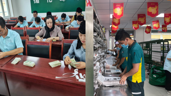 此次比赛项目有邮件打包、报纸粗分、点钞三个项目,比赛选举评委2名,投递员分成两组,每组三人,金融分成一组每组两人分别进行以上项目。比赛前由主持人对此次比赛规则、评分标准、奖励等进行讲解,各位参赛者蓄势待发,比赛开始大家纷纷迅速进入比赛状态,各显身手。比赛结束,分别选取前三名,并由工会负责人为获胜者及参与者颁奖以资鼓励。