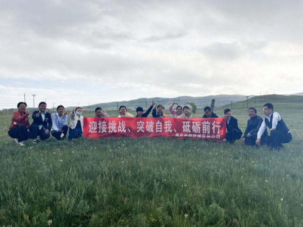 下午6点,全体员工在单位集合,从西海镇出发徒步前往6公里外的达玉五谷村,途中大家相互交流着工作中的感受及经验,欣赏着广阔的金银滩草原美景,阵阵油菜花香沁入心脾。