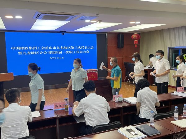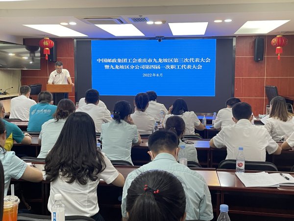 8月5日下午,九龙坡区分公司召开中国邮政集团工会重庆市九龙坡区第三次代表大会暨九龙坡区分公司第四届一次职工代表大会,会议审议通过了印小伟主席所作的中国邮政集团工会重庆市九龙坡区委员会二届工会工作报告和财务部杨凤所作的经费审查工作报告;选举产生了区分公司工会第三届工会委员会和经费审查委员会委员;审议通过了《区分公司员工合同到期履岗考核方案(审议稿)》。会议的召开进一步强化主人翁意识,充分发挥类型的员工和工会组织的桥梁纽带作用,为推进九龙坡邮政高质量发展奠定了良好的基础。