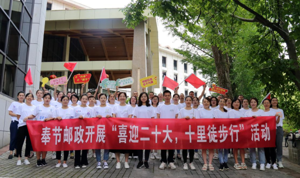 为使职工能够释放工作压力,享受工作,享受生活,有一个健康的身心,8月2日,奉节邮政工会开展“喜迎二十大,十里徒步行”工会活动。早上8点30,各位队员穿上亲手绘制的队服,整装出发。