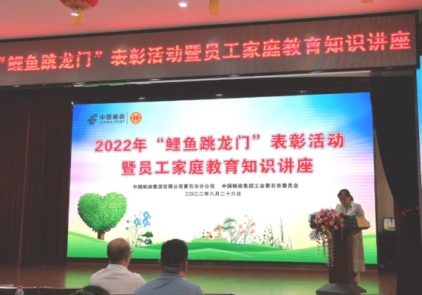 为不断推进幸福邮政建设,让改革发展成果惠及更多职工,助力职工子女求学圆梦,8月26日下午,黄石市分公司在七楼大会议室举办2022年“鲤鱼跳龙门”表彰暨员工家庭教育知识讲座,黄石邮政工会各级工会主席,中、高考获奖职工及其子女,各部门、生产单位的员工共60多人参加本次活动。