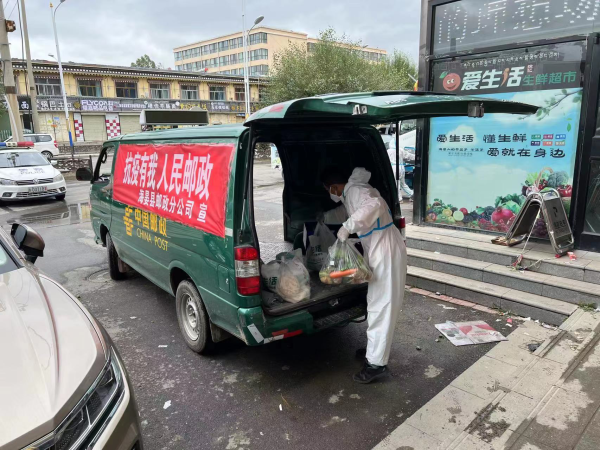 8月28日,海晏县政府和海晏县工业化商务和信息化局因海晏县疫情防控工作需要,要求海晏县分公司进行相关紧急物资的配送工作。接到任务后,海晏县分公司的员工们主动请战,积极投身于防疫物资配送、药品配送、邮件投递、生活物品配送等工作,充分履行行业“国家队”的责任和担当,全力确保邮政服务不间断。