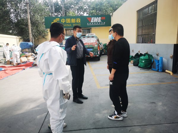 9月15日下午,西宁市分公司党委书记、总经理刘杰来到城北区分公司营业部,看望慰问疫情防控期间坚守岗位的一线员工,为他们送上慰问品,表达市分公司党委与工会的关怀和问候。在营业部生产现场,刘总经理认真察看了生产场所、邮件处理、运输车辆等的消毒消杀落实情况,对员工在疫情期间加班加点、忘我工作、默默奉献的精神表示衷心的感谢以及崇高的敬意。鼓励投递员们继续发扬不怕苦、不怕累的战斗精神,尽快解决邮件积压的现状,切实履行“人民邮政为人民”的服务宗旨,为市民提供更加优质、安全、便捷、高效的寄递服务,并叮嘱大家在工作中务必注意身体健康和人身、车辆、邮件安全,为打赢疫情防控这场硬仗作出贡献。